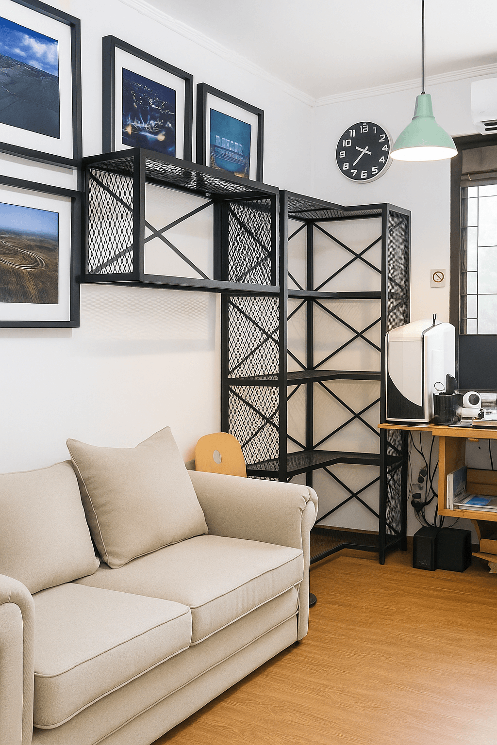 Perpaduan antara kekuatan material besi dan kehangatan kayu menghadirkan suasana elegan yang natural.